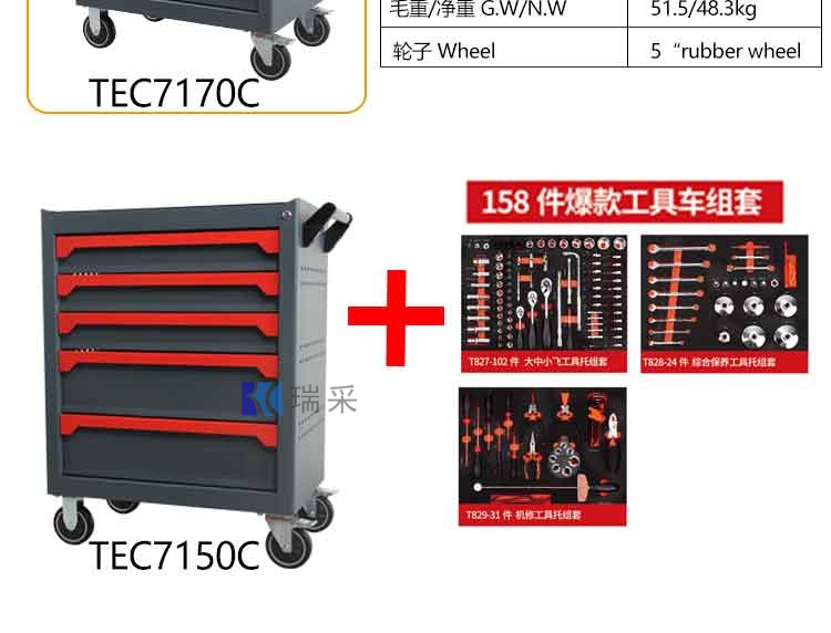 汽保修5抽工具车五层抽屉式移动68件新能源汽修工具组套收纳柜