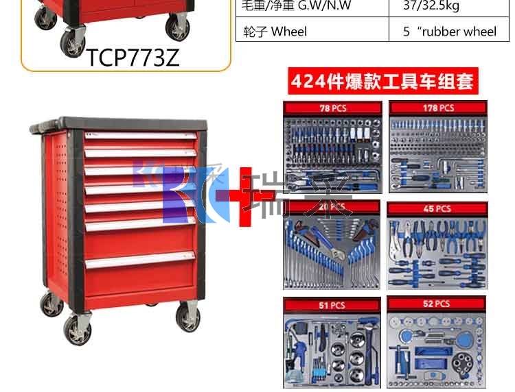 山东瑞采7抽汽保工具车配254件工具组套重型工具车车间五金抽屉工具柜工具箱汽修抽屉移动推车