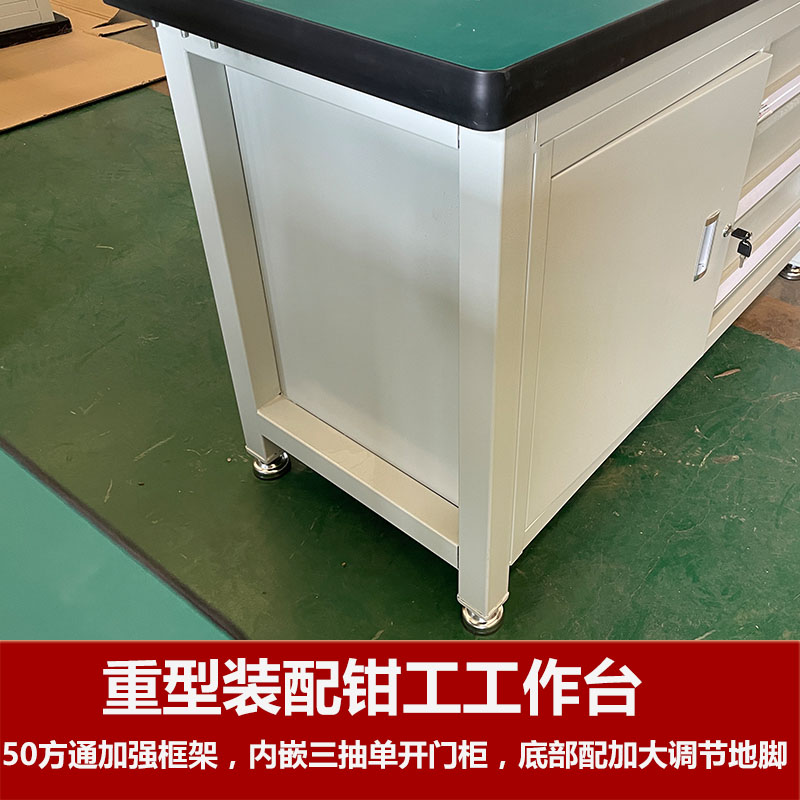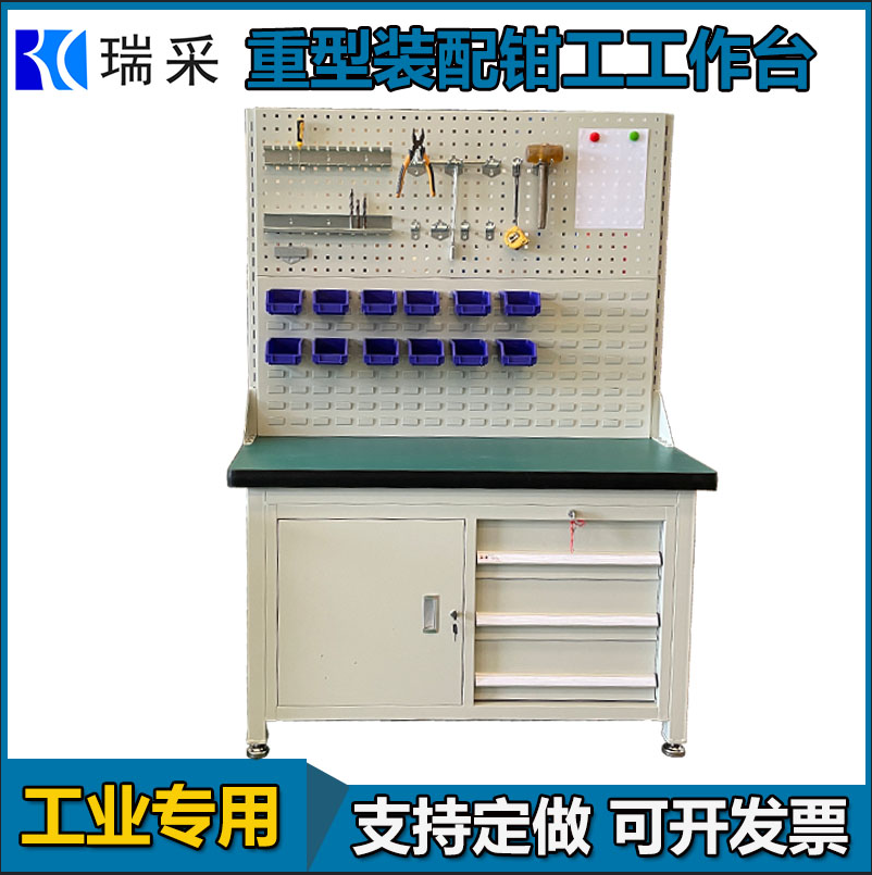 山东瑞采非标定制重型钳工维修工作台电工操作台带背板三抽单开门柜