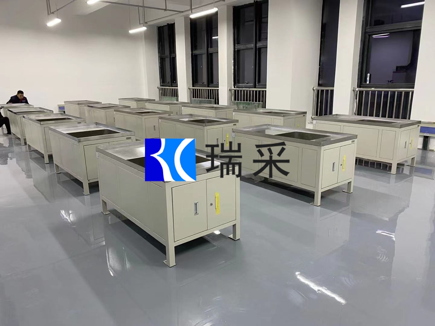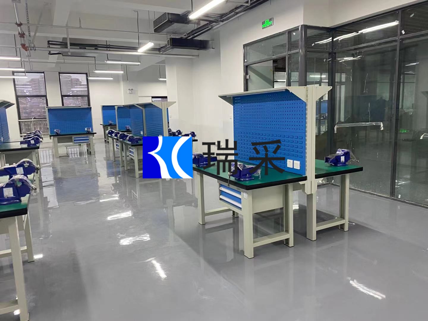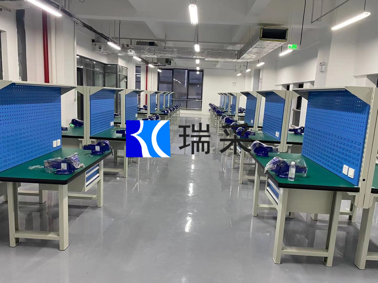 山东瑞采配套青岛大学双工位钳工台四工位实训桌翻砂箱工具车实拍现场
