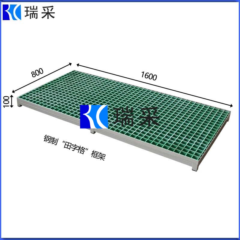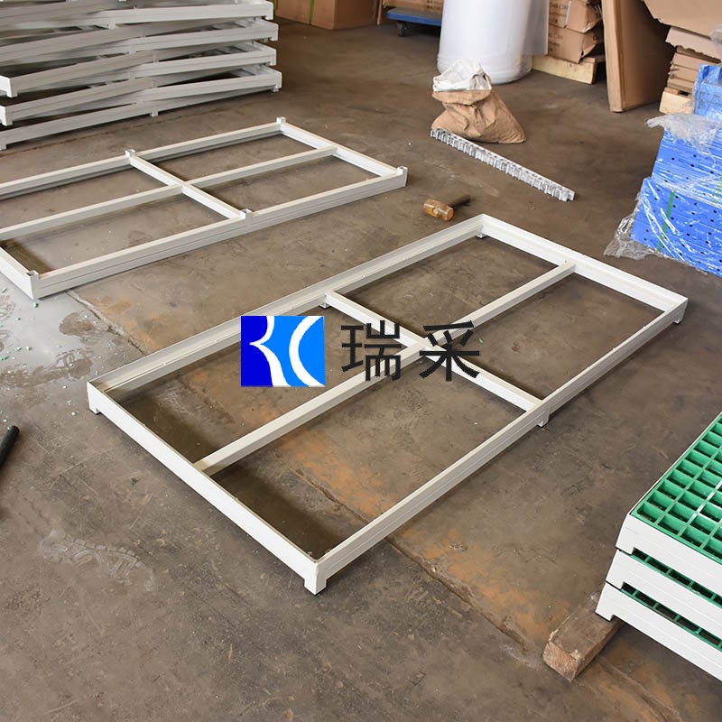 3、框架为“田字型”框架,横向和纵向各加一道加强筋,增加了玻璃钢格栅的接触面,承重增加,框架采用30*30*1.2的方管焊接;