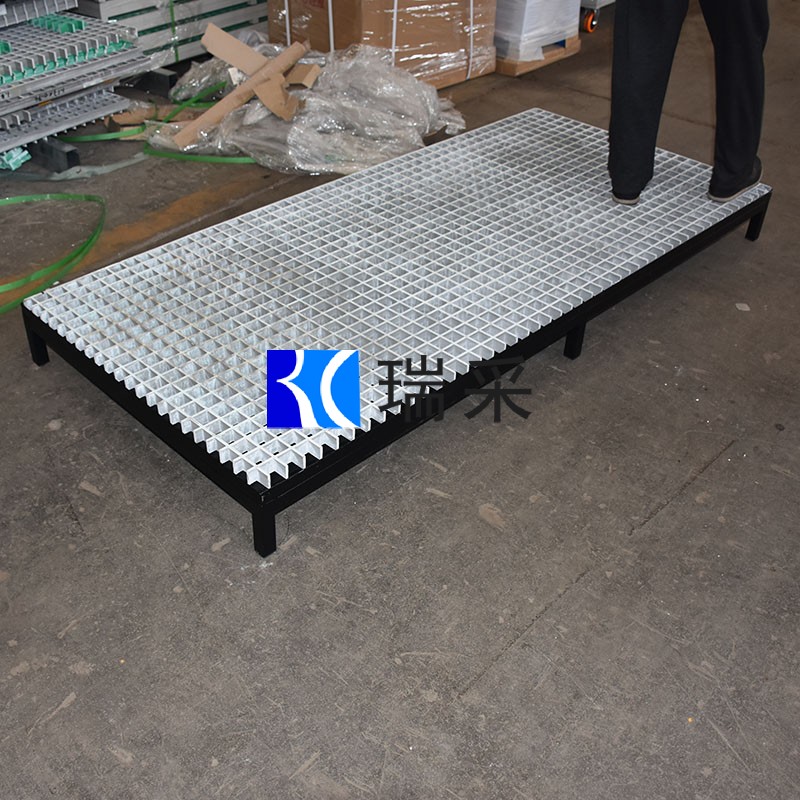 山东瑞采钢制框架整体焊接一体接油盘机床脚踏板非标定制玻璃钢格栅踏板厂家发货