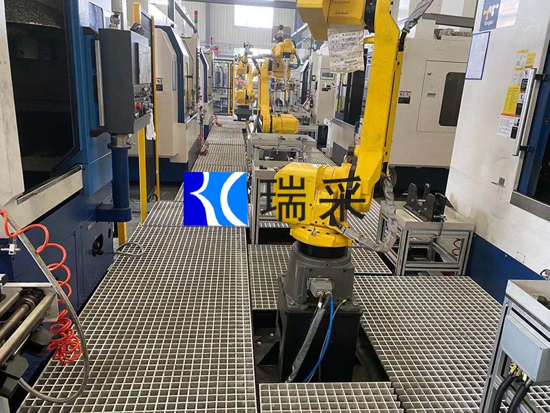 山东瑞采非标定制机器人机械臂流水线生产现场机床脚踏板玻璃钢格栅接油盘踏板可现场测绘工厂发货