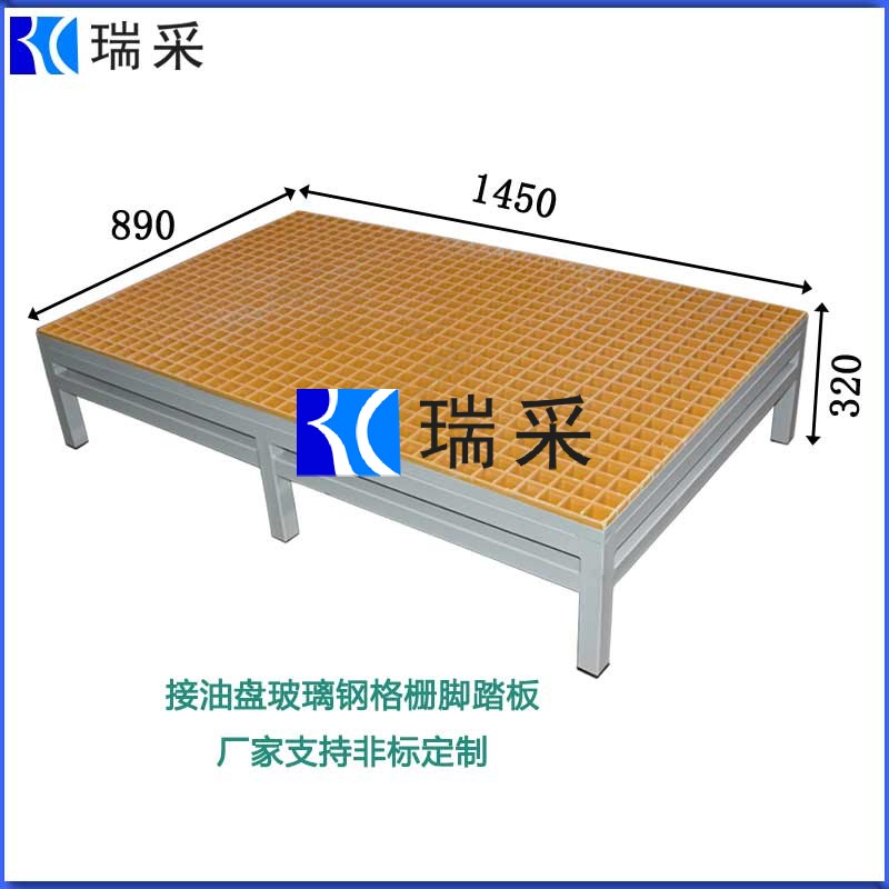 山东瑞采非标定制加厚重型接油盘脚踏板带排油阀玻璃钢格栅机床踏台工厂发货